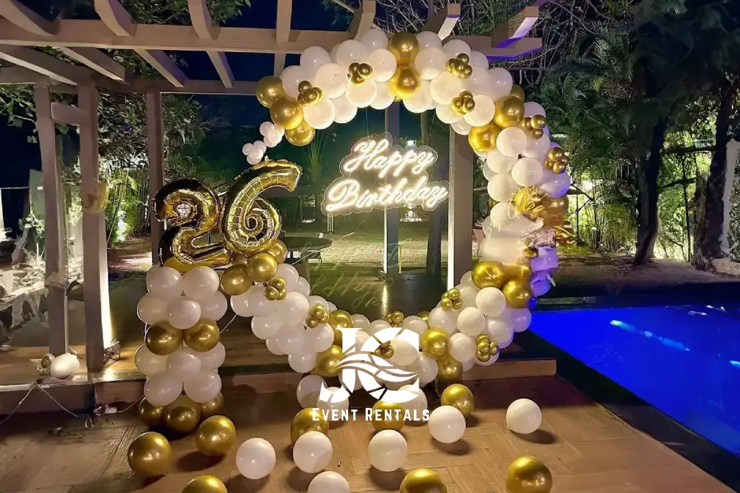 Choose from arches, backdrops, bouquets, or themed golden balloons to match weddings, birthdays, school events, or corporate gatherings.
